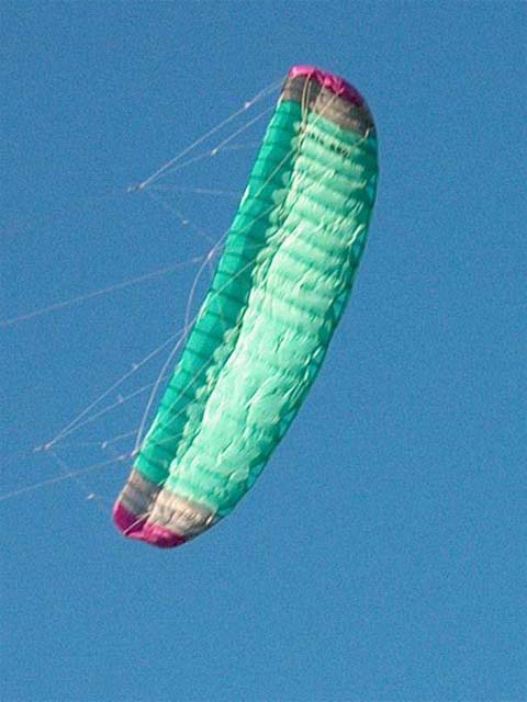 Er lässt sich sehr gut lenken, ohne die Bremsleinen erhöht er den Zug in der Kurve nochmals deutlich. Die Bremsleinen funktionieren sehr direkt, Rückwärtsflug und auch Rückwärtsstarts sind mir auf Anhieb gelungen, obwohl ich keine Vierleiner-Erfahrung habe. |